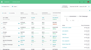 Attribution allows you to easily pull your ad spend from your advertising accounts such as Adwords and Facebook and attribute it to your Stripe conversion and revenue data to see your true ROI. Attribution supports first touch, last touch, linear, time-decay, and other custom attribution models.