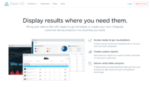Keen IO provides an API-based backend that lets you build analytics applications and visualizations at scale.