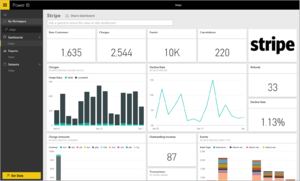 By connecting Power BI with your existing Stripe account, you'll be able to use the Power BI Stripe content pack to monitor, explore, and visualize your Stripe activity. The content pack allows you to easily connect your Stripe data and begin to discover insights with the out-of-the box dashboard, reports, and curated data set on Power BI.