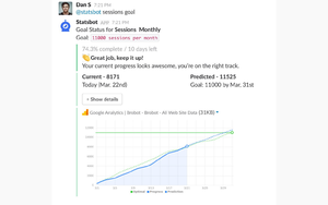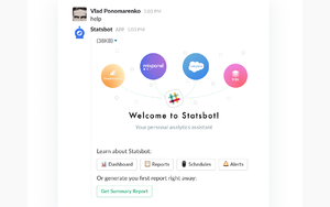 Statsbot pulls data from analytics platforms right into Slack channels. It helps businesses receive analytics insights via natural language, track metrics, and make data-driven decisions. We have integrations with Stripe and analytics platforms like Google Analytics, Salesforce, Mixpanel, and more.
