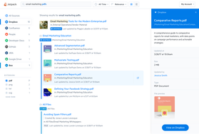 As businesses utilize a growing number of cloud-based tools across multiple platforms like Stripe, Dropbox, Google G Suite, Salesforce, Slack, Zendesk, and others, the basic task of finding content becomes increasingly difficult and frustrating. With Swiftype Enterprise Search, you have access to a suite of AI-powered applications that help you search, discover, and organize vast amounts of data quickly and easily.