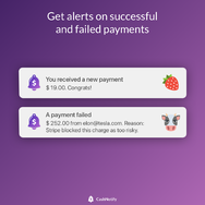 Monitor all your Stripe accounts from your Mac's menu bar. Celebrate when you get paid. Receive alerts on failed payments. All your accounts in one single place, supporting both LIVE and TEST mode. CashNotify is your dedicated channel for getting payment notifications.