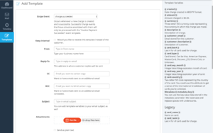 EmailHook's Stripe Connect integration sets your account up to receive events where you can generate templates to send to customers.