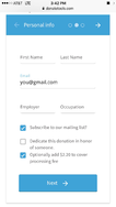 a la Reg makes it easy to collect donor or event ticket payments with one step. After a user fills out your form and hits submit, the registrant is taken to a clean, Stripe credit card form. Voila.