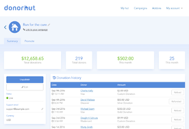 Donorhut is an affordable cloud fundraising software platform used to process and track online donations. Donorhut is ideal for both registered and unregistered charities and nonprofits seeking to raise funds online.