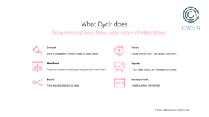 Cyclr is a cloud-based integration platform that allows a non-programmer without an enterprise budget to connect the apps they already run their business on. Streamline your business by Integrating your Stripe data with your CRM, marketing automation, lead capture system, and more.