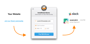 InviteRobot is the easiest way to monetize your Slack community. Let new members pay to subscribe to your Slack team from your website. You decide the subscription price and frequency. InviteRobot invites new members immediately after they pay. Now you can focus on what matters: growing your Slack community.