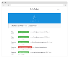Using Stripe Connect we create charges (for one-time payments) or subscriptions (for recurring subscriptions), directly in your Stripe account. InviteRobot uses Stripe's notions of plans and customers, so all your data lives within your Stripe account.
