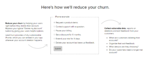 LessChurn helps you reduce your churn by helping your users right before they delete their account. Replace your typical "Delete my Account" button by giving your users helpful options.